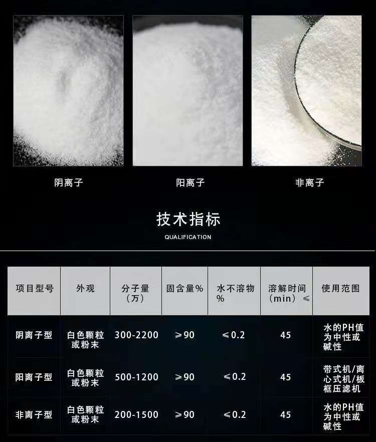 絮凝劑中有聚丙烯酰胺,而聚丙烯酰胺中有——陽離子 陰離子 非離子。 陽離子適用于濃度較高的帶正電荷的無機懸浮物,PH制為中性活堿性溶液中。 陰離子適用于帶負電荷,含有無機物質(zhì)的懸浮物。非離子聚丙烯酰胺使用與有機 無機 混合懸浮物的分離。溶液呈酸性或中性。